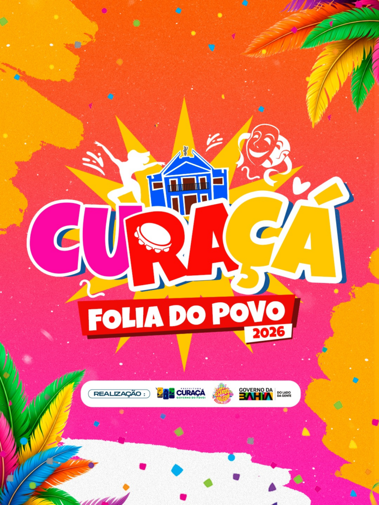 Curaçá já está no ritmo da folia. O Carnaval Curaçá – Folia do Povo 2026 acontece nos dias 15, 16 e 17 de fevereiro, com uma programação que valoriza a música, a cultura popular e o carnaval de rua, fortalecendo uma das manifestações mais tradicionais do município. Serão três dias de festa, com apresentações musicais que prometem movimentar a cidade. No domingo (15), a abertura da programação conta com os shows de Classe A, Ana Costa, Thiaguinho Carvalho e Alex.com. Na segunda-feira (16), sobem ao palco David Cauan, Voa Voa, Som de Pagode e Banda Mirage, mantendo o ritmo da folia nas ruas. Já na terça-feira (17), a programação segue com Samba do Valle, Mano Rodrigues, Willian do Valle, Matheus Torres e Tom Bahia. No mesmo dia, acontece o tradicional Banho de Cheiro, que segue como parte importante da história do carnaval de Curaçá. Pelo segundo ano consecutivo, a Prefeitura de Curaçá reafirma o compromisso de resgatar e fortalecer o Carnaval do município, valorizando as tradições locais e promovendo acesso ao lazer e à cultura.